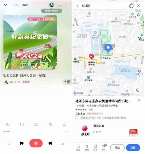 首批在高德地圖和荔枝平臺上線的《初心之旅》系列音頻,涵蓋了中共三大會址紀念館、廣州農講所舊址等廣東10個紅色旅游經典景區。